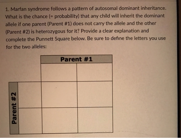 This means having one copy of the Allele or Trait will cause the person to be afflicted with Marfan Syndrome. The childs mother inherited Marfan syndrome from one of her parents. When I present new material I often use a slideshow.